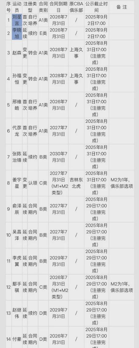 北京时间9月1日,随着CBA新赛季注册窗口期关闭,辽宁男篮也最新公布了新赛季成功注册的14人名单,赵继伟和付豪是D类顶薪,鄢手骐和姜宇星是C类合同,俞泽辰吴昌泽李虎翼以及张陈治锋都是B类合同,老将李晓旭以一年E类合同成功续约,剩下的都是一些新人。单看纸面阵容实力,辽宁男篮能勉强冲击季后赛,但想要夺冠如同天方夜谭。